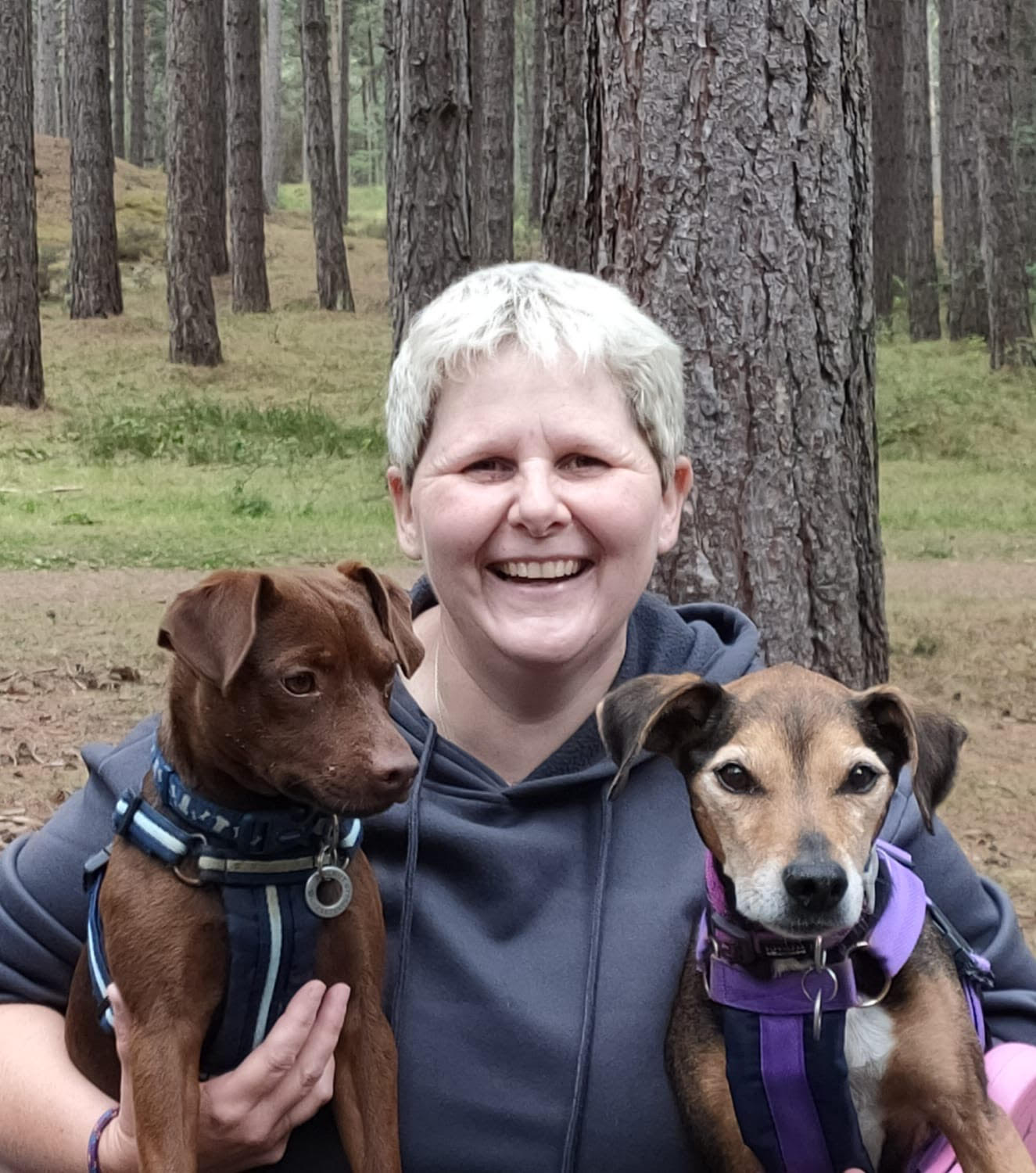 Kim has two Crossbreed Terriers, Peanut and Walnut, and they love to explore all the forests and beaches in the area.
